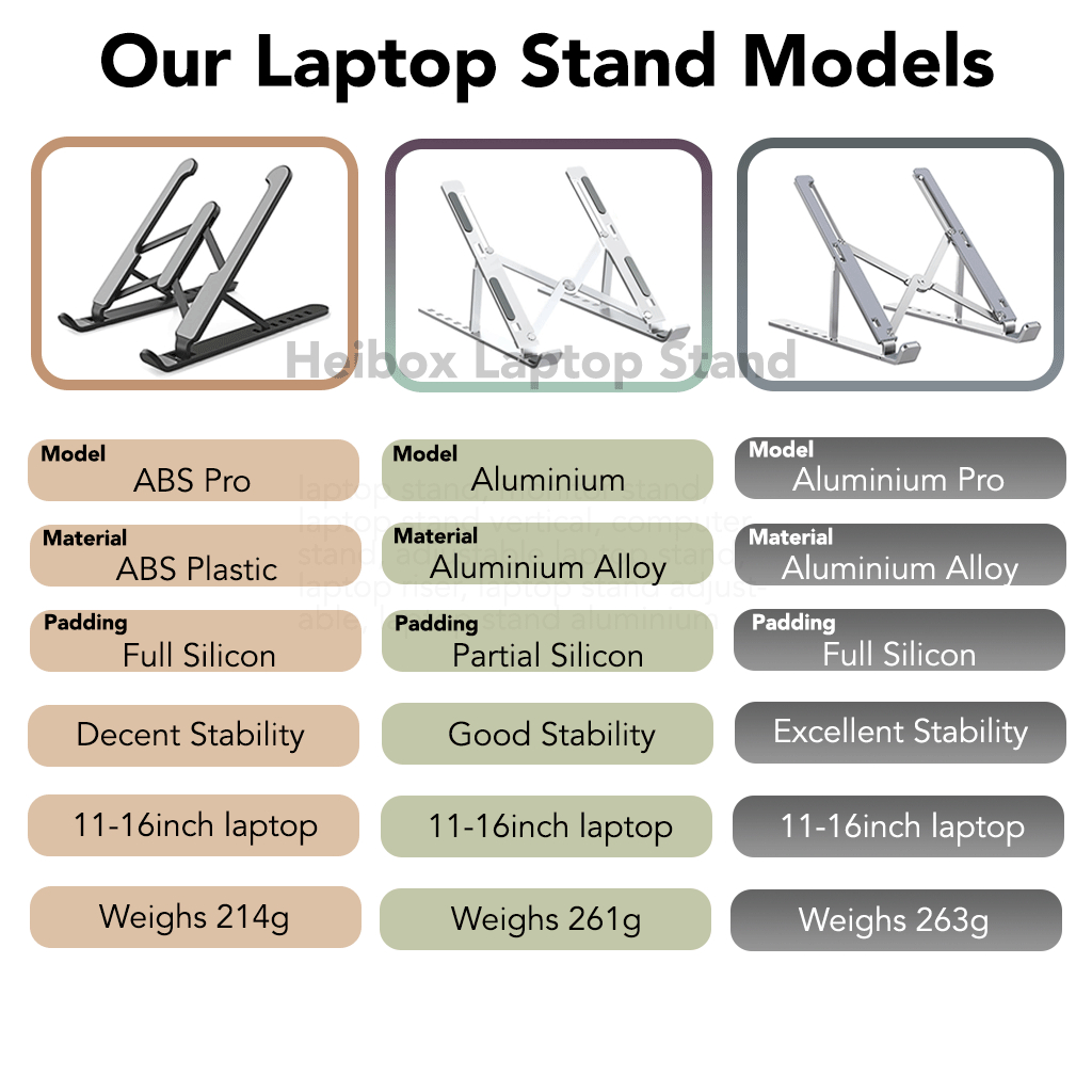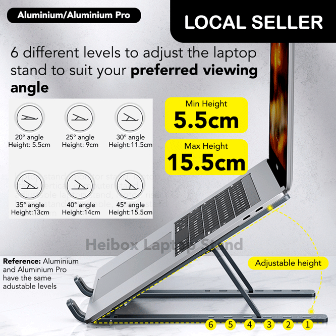Heibox Laptop Stand Aluminium Metal ABS Ergonomic for Notebook Adjustable Portable Foldable